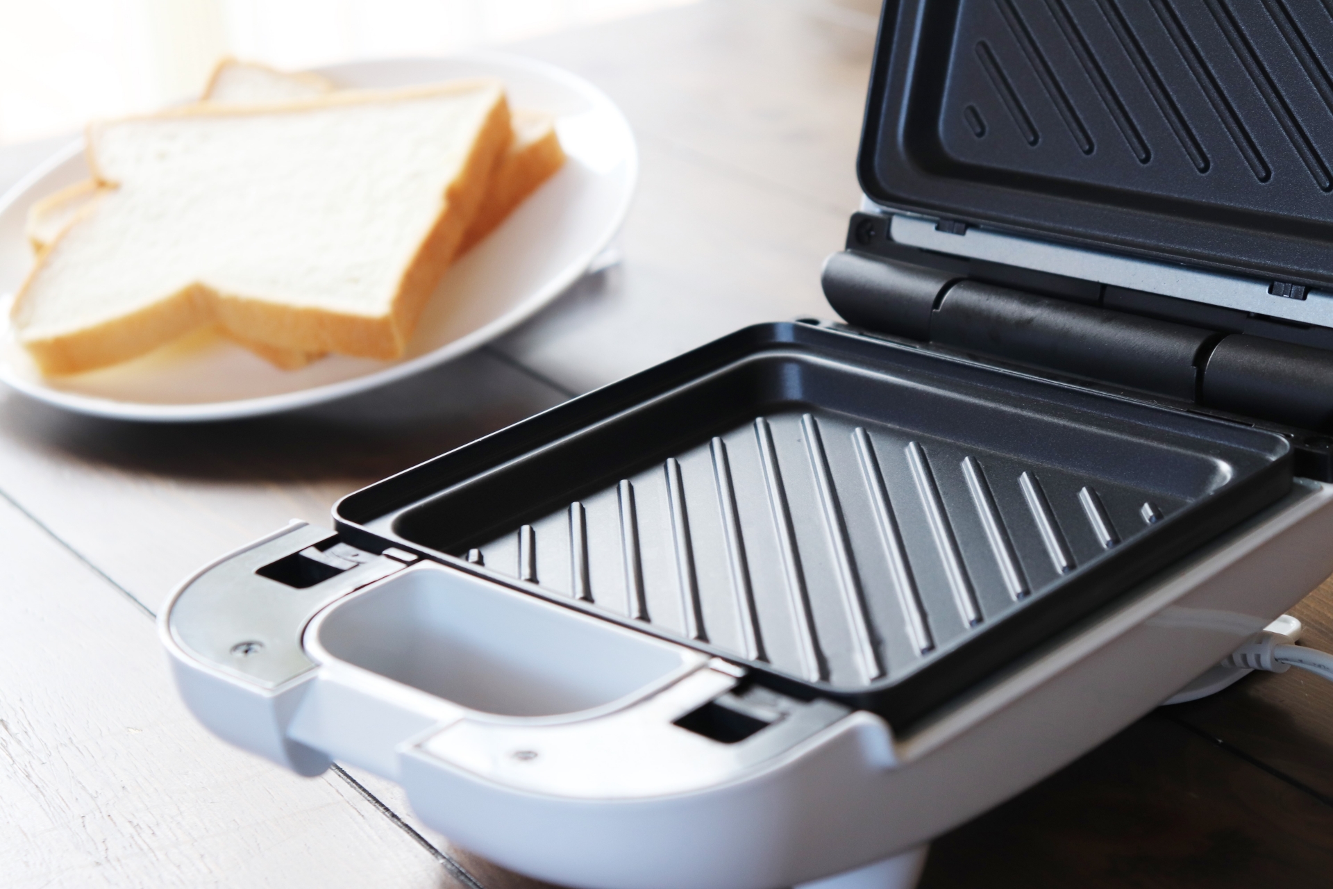 本体の素材は、適度な硬さと厚みがあり、パンの表面を均一に押さえます。熱は直接与えませんが、圧力でパンの密度が上がり、乾きやすい薄い層ができます。ここに蒸気が抜けると、軽い焼き目のようなラインがつきます。完全にトーストのような焦げ目にはなりませんが、口当たりが変わり、サクサク感に近づきます。