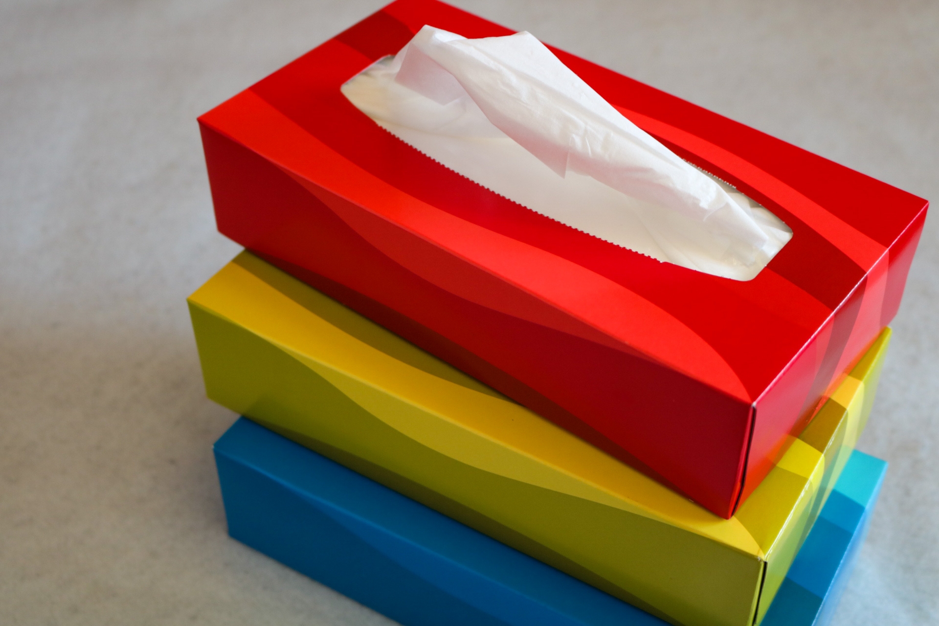 ティッシュの箱は横長で、出し入れに向いた開口を作りやすい形です。