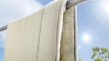 保管時は、小さく固く畳むよりも、ふんわり大きくまとめるほうが負担が少なくなります。重い物を上に載せず、湿気の少ない場所で保管します。折り目をつけないように、ロール状にする方法もあります。