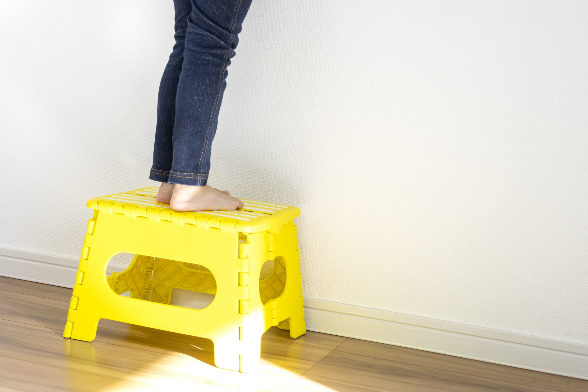 すでに固定されている段差は、安定性の面で有利です。踏面(足を置く面)が十分に広い段で行い、周囲に物を置かないようにします。家族が通る場所では、声かけや時間帯の工夫をしましょう。裸足では滑ることがあるため、底がフラットでグリップのある室内用シューズが安心です。
